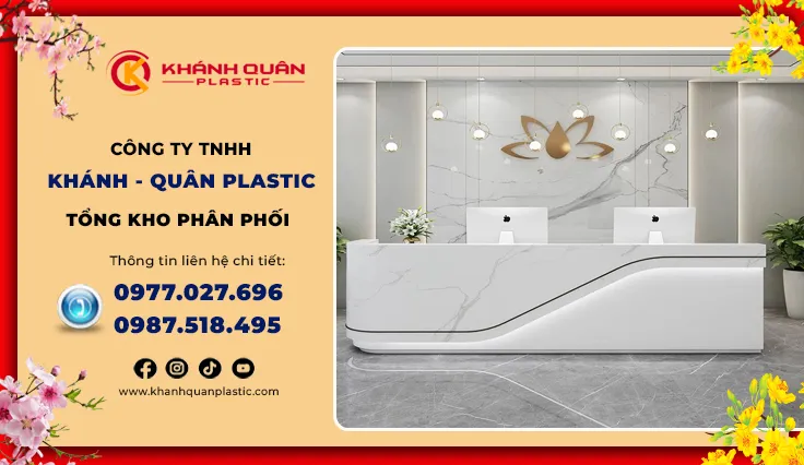 Để có một bức background quầy lễ tân nhựa Pvc vân đá đẳng cấp, ngoài việc chọn được tấm nhựa chất lượng tại Khánh Quân Plastic, quy trình thi công đúng kỹ thuật là yếu tố quyết định độ bền và tính thẩm mỹ.