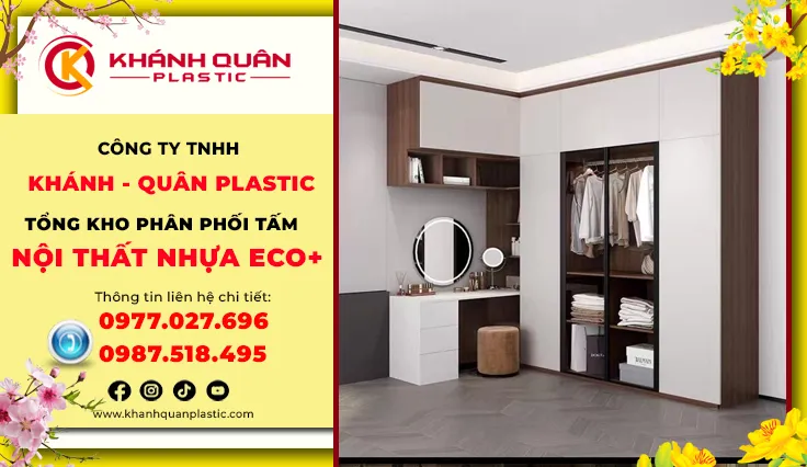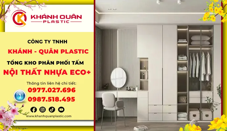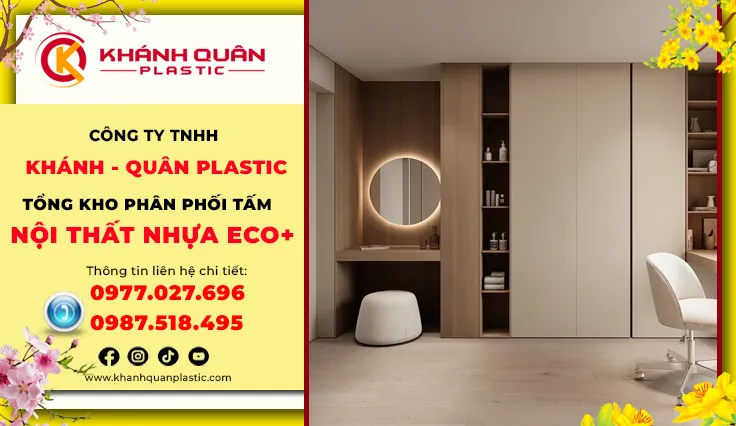 Đô thị hóa ngày càng phát triển nhu cầu về nội thất bền vững, tiết kiệm chi phí và thân thiện với môi trường đang trở thành ưu tiên hàng đầu của nhiều gia đình. Tấm nhựa nội thất Eco+ đã trở thành cuộc cách mạng thay thế dần gỗ công nghiệp nhờ đặc tính siêu bền và an toàn cho sức khỏe. Khánh Quân Plastic tự hào mang đến giải pháp lựa chọn vật liệu an toàn để làm tủ quần áo nhựa Eco+ kết hợp bàn trang điểm – một sự kết hợp hoàn hảo giữa công năng lưu trữ và góc làm đẹp tinh tế, giúp tối ưu diện tích và nâng tầm phong cách cho phòng ngủ của bạn.
