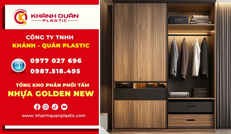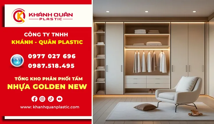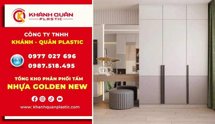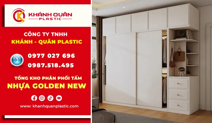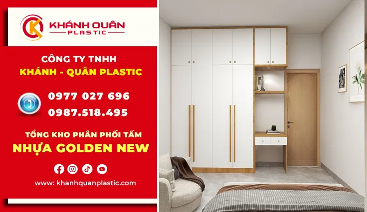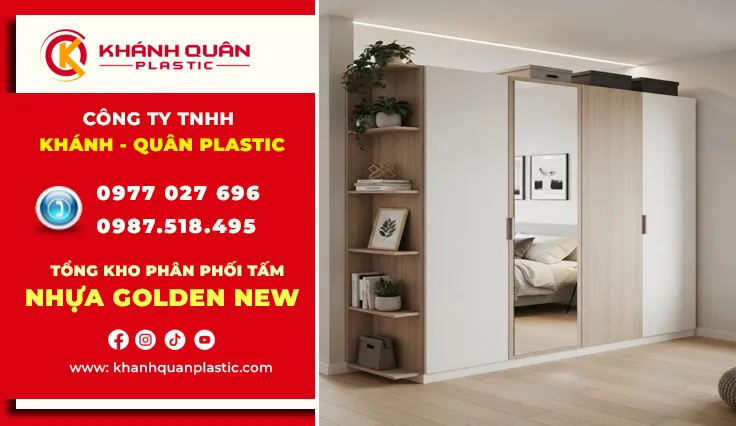 Với những căn hộ, phòng ngủ nhỏ tại TP.HCM, việc tối ưu không gian lưu trữ là điều quan trọng hàng đầu. Tấm nhựa Golden New mang đến giải pháp hiện đại cho tủ quần áo âm tường, vừa tiết kiệm diện tích, vừa đảm bảo độ bền, chống ẩm và chống mối mọt. Kết hợp với thiết kế thông minh, tủ quần áo nhựa Golden New giúp không gian sống trở nên gọn gàng, tiện nghi và thẩm mỹ, trở thành lựa chọn lý tưởng cho không gian nhỏ. Hãy để Khánh Quân Plastic biến không gian nhỏ bé của bạn thành tổ ấm sang trọng và tiện nghi nhất!”