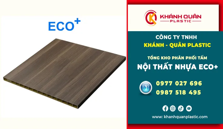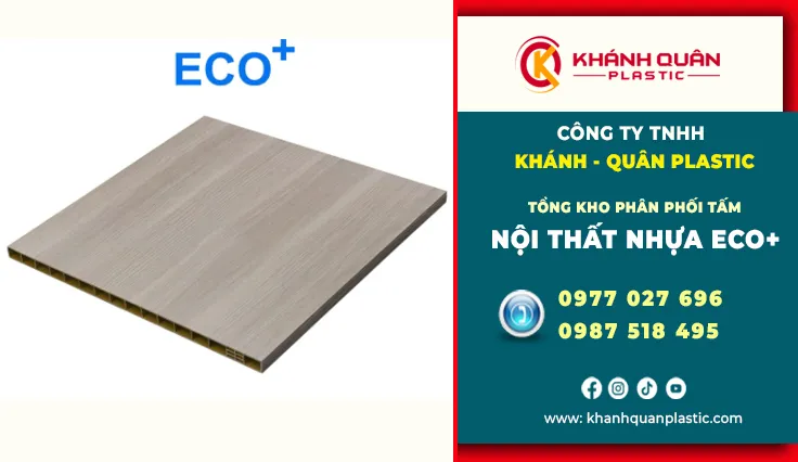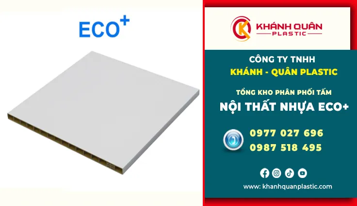 Tấm nội thất nhựa Eco+ là sản phẩm cao cấp thuộc Đại Việt Group, đơn vị tiên phong trong lĩnh vực vật liệu nội thất thông minh tại Việt Nam. Công nghệ cải tiến Eco+ mang đến bước tiến vượt trội về chất lượng và tính năng. Được sản xuất theo tiêu chuẩn xanh, Eco+ không chỉ thân thiện với môi trường mà còn đảm bảo an toàn cho sức khỏe người dùng. Sản phẩm được Phân phối chính thức bởi Khánh Quân Plastic, đảm bảo nguồn gốc rõ ràng và dịch vụ hậu mãi chuyên nghiệp.