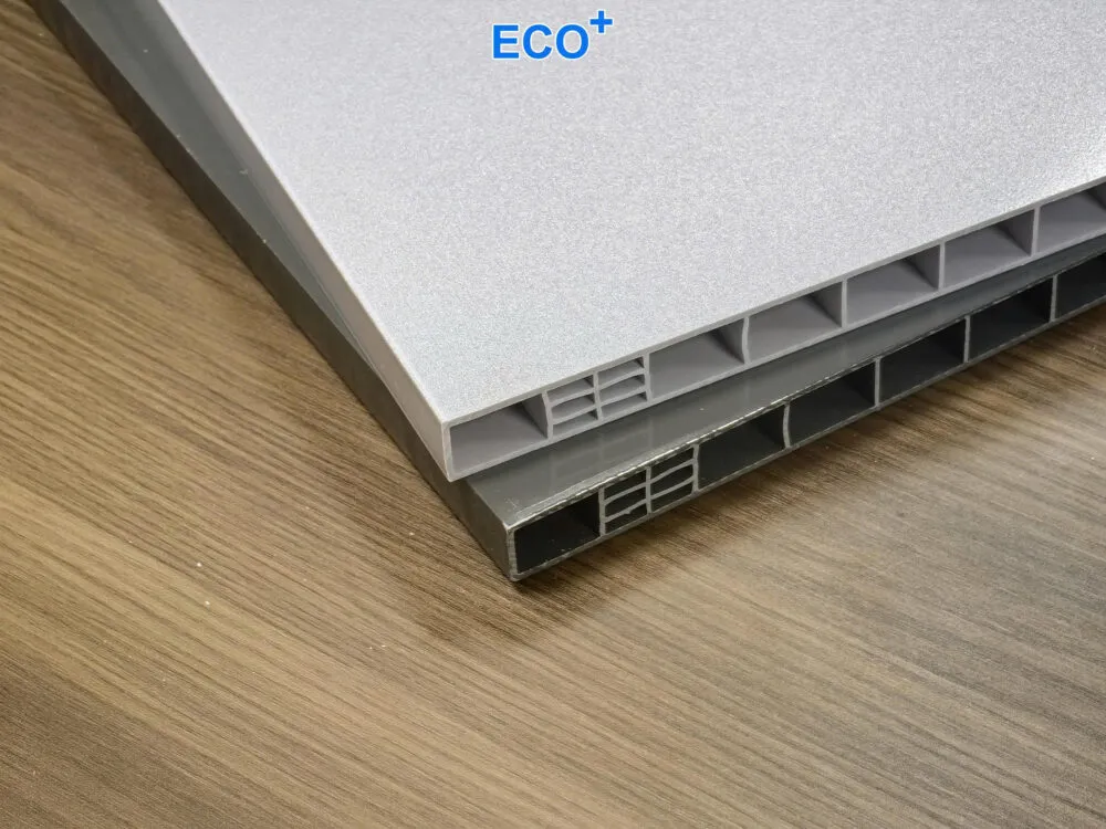 Một điểm cải tiến khác tạo nên giá trị khác biệt của tấm nội thất ECO+ là hai bề mặt trên – dưới được tăng độ dày đồng đều. Trong khi nhiều dòng tấm nhựa chỉ tập trung vào phần lõi, ECO+ chú trọng đến sự cân bằng tổng thể của toàn bộ kết cấu. Hai lớp bề mặt đóng vai trò như “lớp áo giáp” bảo vệ tấm, giúp: