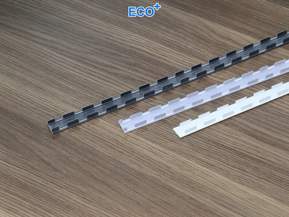 Một trong những cải tiến quan trọng nhất của tấm nội thất ECO+ chính là hệ thanh tăng cường tích hợp hãm chống trượt, đóng vai trò như “khung xương” gia cố toàn bộ lõi tấm. Khác với các tấm nhựa thông thường chỉ sử dụng xương rỗng hoặc thanh tăng cường trơn, ECO+ được thiết kế thêm các gờ hãm nhỏ chạy dọc theo thanh, tạo liên kết ma sát kép giữa phần lõi và bề mặt. Nhờ đó, sản phẩm đạt được nhiều ưu điểm vượt trội: