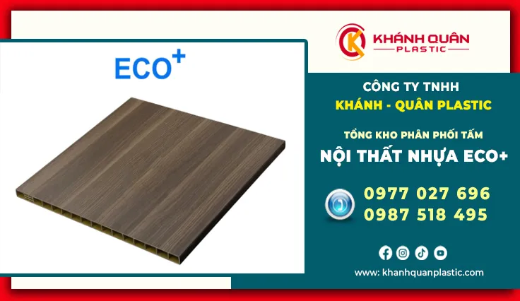 Nhựa Eco+ là thế hệ tấm nhựa nội thất cao cấp mới, được sản xuất trên dây chuyền công nghệ hiện đại, đạt tiêu chuẩn chất lượng. Với cấu trúc xương tăng cứng và thanh tăng cường có hãm chống trượt, mang lại độ chắc chắn vượt trội. Tấm nội thất nhựa Eco+ là loại tấm nhựa cao cấp sử dụng trong nội thất, có độ bền cao, chống ẩm mốc, chống mối mọt và dễ vệ sinh.