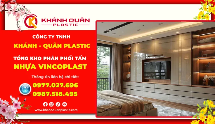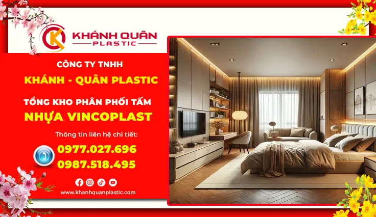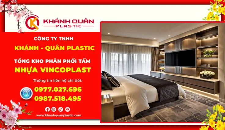 Phòng ngủ không chỉ là nơi nghỉ ngơi mà còn là không gian riêng tư để thư giãn, giải trí sau ngày dài mệt mỏi. Vách ốp tivi phòng ngủ nhựa Vincoplast đang trở thành lựa chọn thông minh của hàng ngàn gia đình tại TPHCM nhờ sự kết hợp hoàn hảo giữa tính thẩm mỹ, độ bền vượt trội và khả năng chống chịu môi trường ẩm ướt đặc trưng của khí hậu miền Nam. Là nhà phân phối chính hãng Vincoplast tại TP.HCM, Khánh Quân Plastic mang đến giải pháp vật liệu chất lượng cao, phù hợp xu hướng nội thất hiện đại và điều kiện khí hậu đặc thù của khu vực phía Nam.