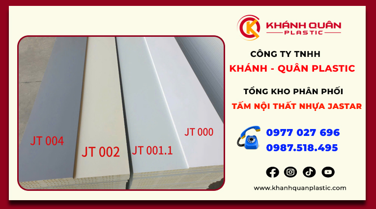Khánh Quân Plastic không chỉ cung cấp sản phẩm chất lượng mà còn chú trọng dịch vụ hậu mãi – tư vấn chuyên sâu – giao hàng nhanh chóng. Với phương châm “Uy tín tạo nên thương hiệu”, chúng tôi luôn đồng hành cùng nhà thầu, đại lý và khách hàng trong mọi công trình. Khánh Quân Plastic – Địa chỉ đáng tin cậy cho mọi công trình nội thất với tấm nhựa Jastar chính hãng.
