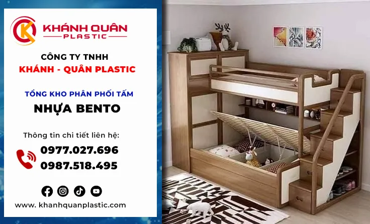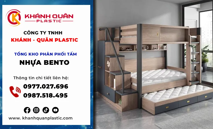 Kỷ nguyên nội thất hiện đại, ngày càng chuyển mình theo hướng bền – nhẹ – chống nước – thân thiện môi trường, các vật liệu truyền thống như gỗ công nghiệp hay MDF dần bộc lộ nhiều hạn chế, đặc biệt trong môi trường ẩm ướt. Chính vì thế sự lên ngôi của các vật liệu thông minh đã thay đổi hoàn toàn tư duy thiết kế. Không còn bó hẹp trong gỗ tự nhiên đắt đỏ hay gỗ công nghiệp dễ ẩm mốc, tấm nội thất nhựa Bento đã xác lập một tiêu chuẩn mới về độ bền và thẩm mỹ. Khánh Quân Plastic tự hào là đơn vị tiên phong cung cấp giải pháp tấm nhựa Bento chất lượng cao, mang đến cuộc cách mạng cho không gian phòng ngủ với ứng dụng giường ngủ tầng nhựa Bento cho bé an toàn tuyệt đối.