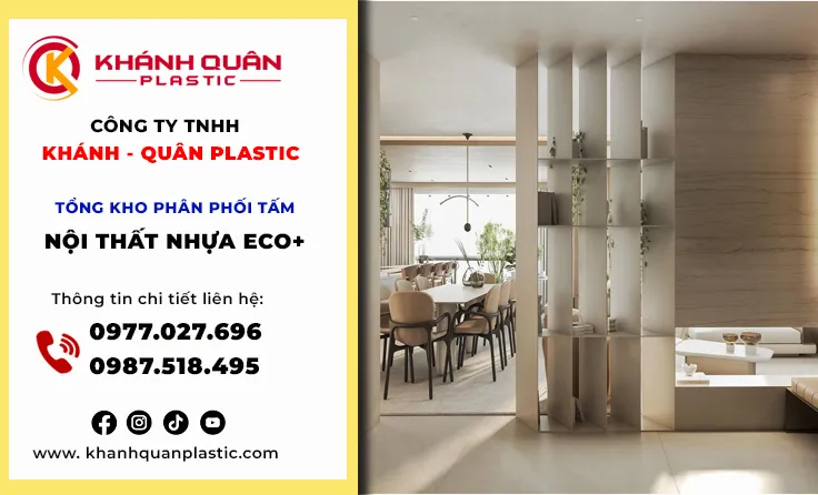 Thiết kế nội thất đang chuyển dịch mạnh mẽ sang các vật liệu xanh và bền vững, Khánh Quân Plastic tự hào là đơn vị tiên phong mang đến giải pháp tấm nội thất nhựa Eco+ chất lượng cao cho thị trường miền Tây. Không chỉ là một nhà cung cấp, chúng tôi là đối tác chiến lược của hàng trăm xưởng sản xuất, đơn vị thầu phụ và đại lý bán lẻ, hiện thực hóa những không gian sống hiện đại, tinh tế và bền bỉ với thời gian. Bài viết giúp bạn hiểu rõ toàn diện về sản phẩm và giới thiệu đơn vị Khánh Quân Plastic tổng kho phân phối tấm nhựa nội thất Eco+ quy mô lớn tại khu vực miền Tây, cung cấp nguồn hàng ổn định – giá sỉ cạnh tranh – hỗ trợ kỹ thuật toàn diện cho đại lý, xưởng nội thất và đơn vị thi công.