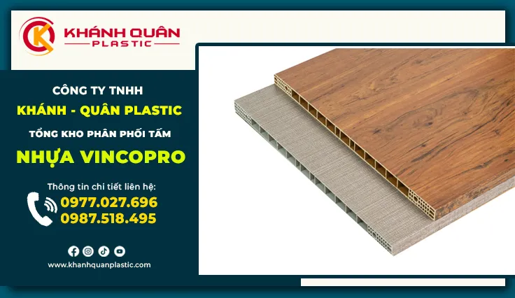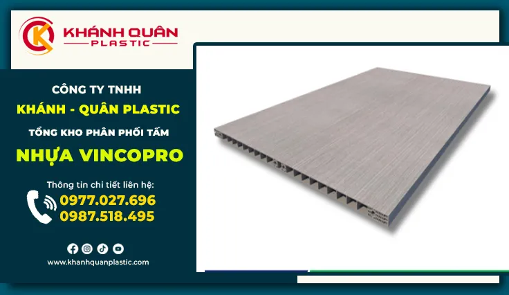 Khánh Quân Plastic hoạt động là một nhà phân phối và tổng kho nhựa nội thất lớn, chuyên cung cấp đa dạng các sản phẩm nhựa Pvc – trong đó có tấm nhựa Vincopro chính hãng với giá sỉ tận xưởng cho đại lý, nhà thầu, cửa hàng vật liệu xây dựng và đơn vị thi công.