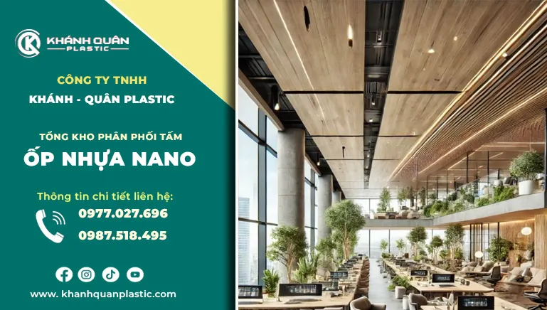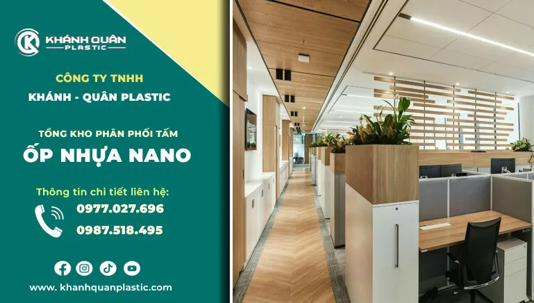 Bạn đang tìm kiếm nhà cung cấp tấm ốp Nano uy tín tại Bình Dương? Hay bạn cần một đơn vị cung ứng vật liệu nội thất giá sỉ cho dự án văn phòng sắp tới? Không còn là những mảng trần thạch cao đơn điệu hay trần nhôm lạnh lẽo, tấm ốp nhựa Nano đang tạo nên một làn sóng mới trong thiết kế nội thất văn phòng. Tổng kho Khánh Quân Plastic tự hào là đối tác đáng tin cậy, mang đến nguồn cung tấm ốp nhựa Nano cao cấp ngay tại Bình Dương. Sản phẩm không chỉ giúp văn phòng của bạn trở nên sang trọng, tối ưu ánh sáng mà còn mang lại môi trường làm việc thoải mái, giảm tiếng ồn và tiết kiệm chi phí vận hành lâu dài.