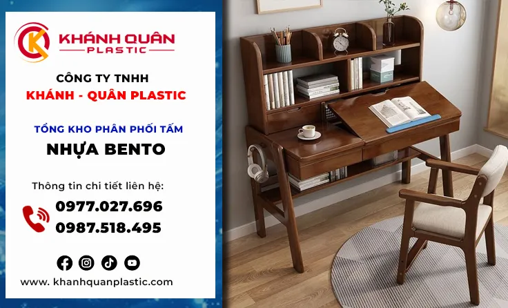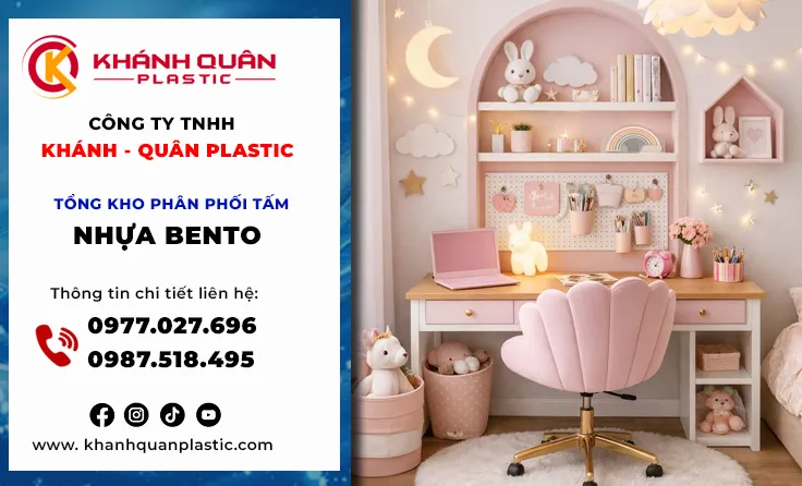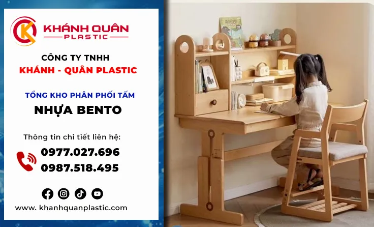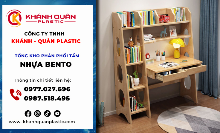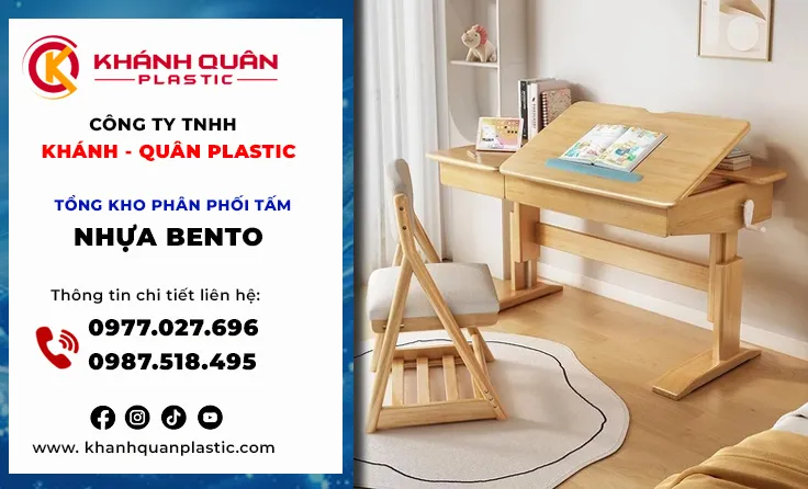 Thiết kế nội thất bền vững, việc lựa chọn vật liệu không chỉ dừng lại ở tính thẩm mỹ mà còn là câu chuyện về sức khỏe và độ bền. Đặc biệt, với phân khúc nội thất trẻ em, tiêu chuẩn này càng trở nên khắt khe. Tấm nhựa Bento – dòng vật liệu nội thất cao cấp – đang trở thành lựa chọn thông minh của các xưởng sản xuất bàn học hiện đại. Khánh Quân Plastic tự hào là cầu nối mang dòng tấm nhựa Bento cao cấp đến với thị trường Vũng Tàu. Từ những chiếc bàn học vững chãi, màu sắc tươi sáng đến khả năng chống nước tuyệt đối phù hợp khí hậu ven biển, tấm nhựa Bento không chỉ giúp ba mẹ yên tâm mà còn biến góc học tập thành không gian sáng tạo đầy màu sắc. Hãy cùng khám phá cách Khánh Quân Plastic nâng tầm bàn học cho bé bằng vật liệu bền đẹp và an toàn nhất.