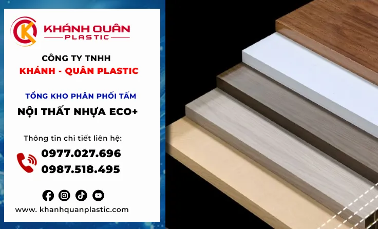 Với phương châm “Chất lượng tạo niềm tin”, luôn đặt lợi ích khách hàng lên hàng đầu. Mỗi sản phẩm cung cấp đều được kiểm tra kỹ lưỡng trước khi đến tay khách hàng, đảm bảo độ bền và tính thẩm mỹ theo đúng yêu cầu. Bạn đang tìm kiếm nhà phân phối tấm nhựa nội thất Eco+ đáng tin cậy tại khu vực phía Nam, Khánh Quân Plastic chính là giải pháp toàn diện giúp bạn tối ưu chi phí – nâng tầm không gian – đảm bảo độ bền lâu dài.