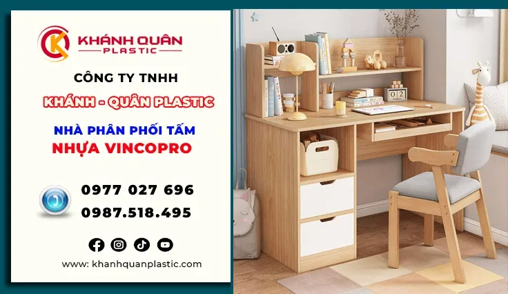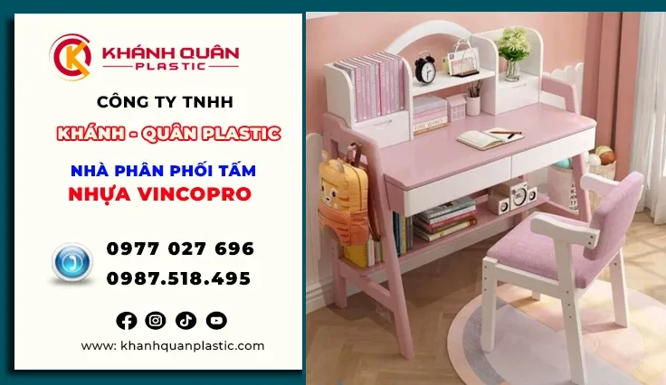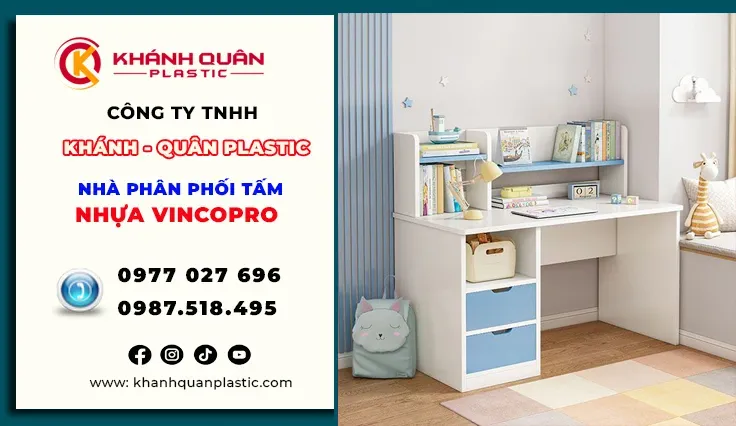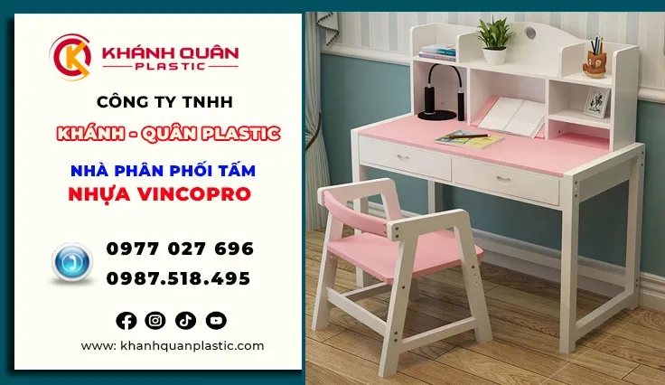 Bạn đang tìm kiếm một vật liệu bền bỉ, an toàn và có tính thẩm mỹ cao để kiến tạo không gian sống và học tập cho con yêu. Tấm nhựa Vinco Pro là vật liệu nội thất cao cấp được nghiên cứu và sản xuất theo tiêu chuẩn châu Âu, mang đến giải pháp thay thế gỗ tự nhiên hiệu quả trong thiết kế và thi công. Nhờ khả năng chống nước, trọng lượng nhẹ, màu sắc đa dạng và chi phí hợp lý, tấm nhựa Vinco Pro được ứng dụng bàn học nhựa Vinco Pro cho bé yêu lại là sản phẩm được tối ưu theo tiêu chí an toàn – thẩm mỹ – tiện dụng. Với chất liệu nhựa bền chắc, mép bo tròn, không độc hại, sản phẩm giúp trẻ có môi trường học tập thoải mái và an toàn tuyệt đối. Hãy để bé yêu được học tập trong không gian thoải mái, an toàn và đầy màu sắc cùng bàn học nhựa Vinco Pro ngay hôm nay!