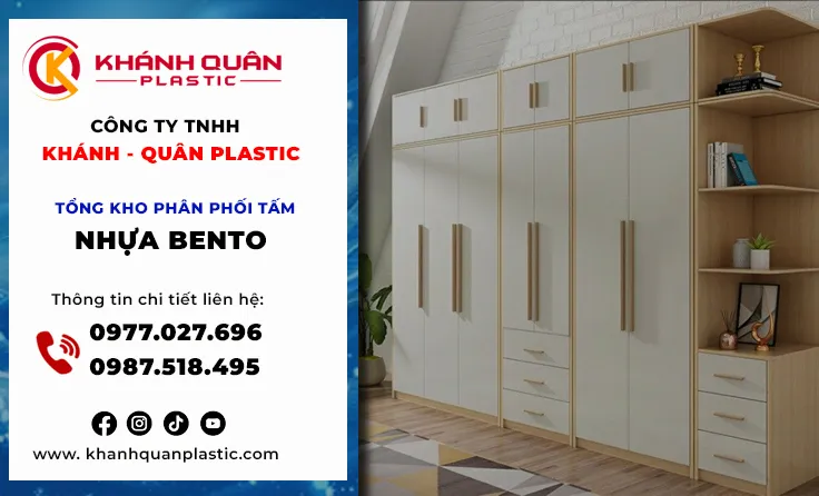 Không gian sống hiện đại - kỷ nguyên của nội thất xanh và vật liệu thông minh lên ngôi đòi hỏi vật liệu nội thất phải bền bỉ. Không còn phụ thuộc hoàn toàn vào gỗ tự nhiên hay gỗ công nghiệp và điều đó tấm nội thất nhựa Bento đang dần trở thành ngôi sao mới nhờ độ bền vượt trội và tính thẩm mỹ cao đã nhanh chóng trở thành lựa chọn ưu tiên trong ngành nội thất. Bạn đang tìm kiếm vật liệu nội thất vừa đẹp vừa bền, phù hợp khí hậu miền Nam mà vẫn kiểm soát tốt chi phí? Tổng kho Khánh Quân Plastic chính là câu trả lời hoàn hảo. Với vị thế là tổng kho tấm nhựa Bento uy tín tại TPHCM, chúng tôi không chỉ cung cấp nguồn hàng chính hãng giá sỉ ổn định mà còn mang đến những ý tưởng ứng dụng sáng tạo, nổi bật nhất là dòng tủ quần áo nhựa Bento kết hợp kệ trang trí – giải pháp giúp không gian sống trở nên tiện nghi và cuốn hút hơn bao giờ hết.