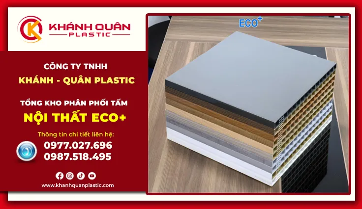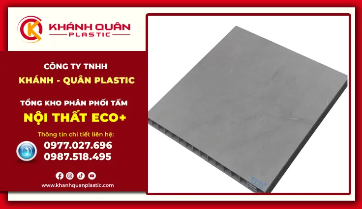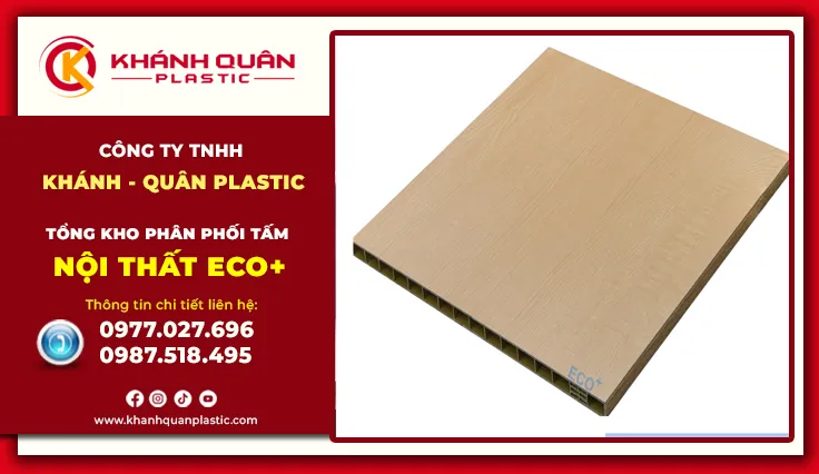 Tấm nội thất Eco+ đại diện cho thế hệ vật liệu nhựa nội thất cao cấp mới, được nghiên cứu và phát triển bởi Đại Việt Group – thương hiệu uy tín trong ngành vật liệu xây dựng, và phân phối độc quyền bởi Khánh Quân Plastic. Eco+ không chỉ là nhựa là sự kết hợp giữa bột nhựa Pvc nguyên sinh và công nghệ ép nén cao cấp, tạo ra những tấm vật liệu có độ cứng tương đương gỗ nhưng sở hữu đặc tính "bất tử" trước mối mọt và nước. Đây là sản phẩm hội tụ công nghệ tiên tiến cùng tiêu chuẩn quốc tế, mang đến giải pháp nội thất bền vững cho mọi công trình hiện đại.