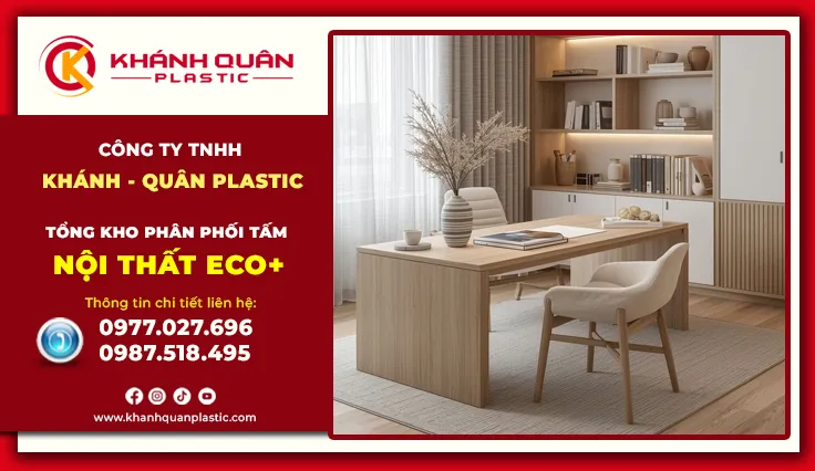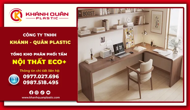 Góc làm việc tại nhà đã trở thành một phần không thể thiếu không chỉ là nơi giải quyết sổ sách, mà còn là không gian khơi nguồn cảm hứng sáng tạo. Để góc làm việc tại nhà thực sự hiệu quả, một chiếc bàn không chỉ đẹp mà còn nhẹ nhàng. Tấm nội thất Eco+ xuất hiện như một làn gió mới, phá vỡ định kiến về đồ nhựa thông thường. Tại tổng kho Khánh Quân Plastic, chúng tôi mang đến những dòng tấm nội thất nhựa Eco+ cao cấp, là nguyên liệu chính tạo nên những mẫu bàn làm việc nhựa tại nhà với tiêu chí: Đẹp mắt – Nhẹ nhàng – Tiện dụng. Đây không chỉ là một món đồ nội thất, mà là người bạn đồng hành bền bỉ, giúp không gian làm việc của bạn trở nên chuyên nghiệp và hiện đại hơn bao giờ hết. Hãy cùng tìm hiểu vì sao bàn nhựa Eco+ đang chiếm trọn cảm tình của những ai yêu thích sự tiện nghi và thẩm mỹ trong không gian sống.