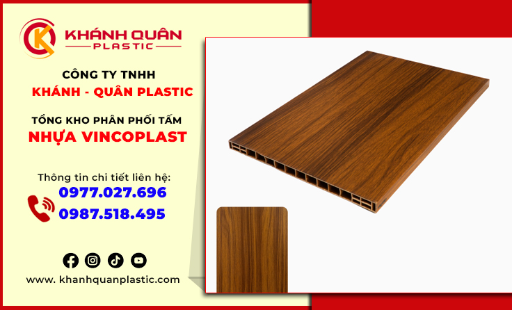 Tấm nhựa Vincoplast là dòng vật liệu được sản xuất từ nhựa Pvc cao cấp, kết hợp công nghệ ép và phủ bề mặt hiện đại, mang lại vẻ đẹp giống gỗ tự nhiên nhưng khắc phục hoàn toàn nhược điểm của gỗ. Nhựa Vincoplast được sản xuất từ nhựa Pvc (Polyvinyl Chloride) nguyên sinh kết hợp cùng hệ phụ gia cao cấp, giúp tối ưu hóa các đặc tính kỹ thuật và gia tăng tuổi thọ sản phẩm trong môi trường nội thất hiện đại. Vincoplast được thiết kế với cấu trúc rỗng dạng hộp bên trong, tích hợp các thanh xương nhựa chạy dọc, tạo nên kết cấu vững chắc nhưng vẫn đảm bảo trọng lượng nhẹ.