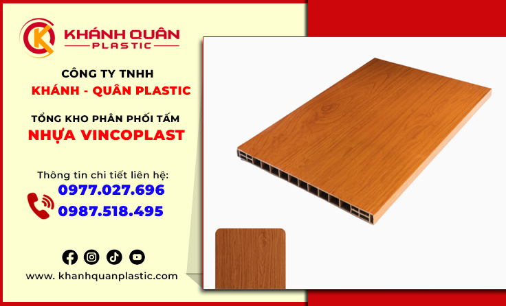 Khánh Quân Plastic là một trong những tổng kho phân phối nhựa Vincoplast uy tín hàng đầu tại TP.HCM. Với nhiều năm kinh nghiệm trong ngành, doanh nghiệp không chỉ cung cấp sản phẩm chất lượng cao mà còn mang đến giải pháp tối ưu cho các công trình xây dựng, nội thất và sản xuất công nghiệp. Khánh Quân Plastic hướng đến mục tiêu trở thành tổng kho vật liệu nhựa Vincoplast lớn nhất miền Nam, mang đến giải pháp vật liệu hiện đại, góp phần nâng cao chất lượng công trình và cuộc sống. Lợi thế của Khánh Quân Plastic, tổng kho quy mô lớn tại TP.HCM, luôn sẵn hàng với số lượng lớn. Đội ngũ tư vấn chuyên nghiệp, am hiểu kỹ thuật, sẵn sàng đồng hành cùng khách hàng.